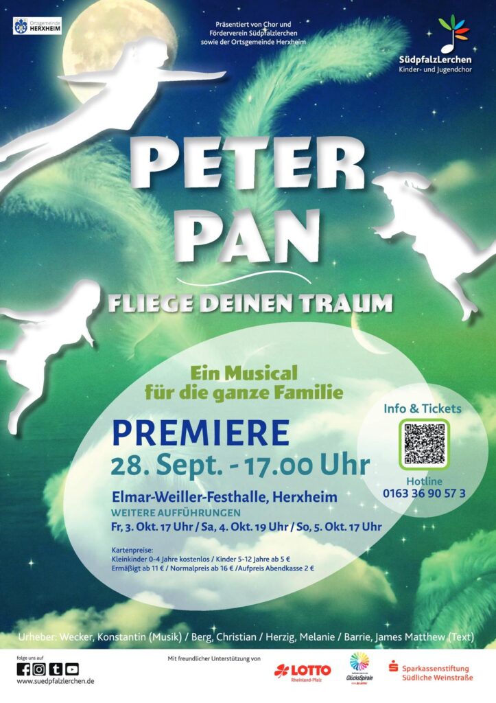Am 28. September 2025 feiert das neue Musical „Peter Pan – Fliege deinen Traum“ in der Elmar-Weiller-Festhalle in Herxheim seine Premiere. Weitere Aufführungen finden am 03., 04. und 05. Oktober 2025 statt.