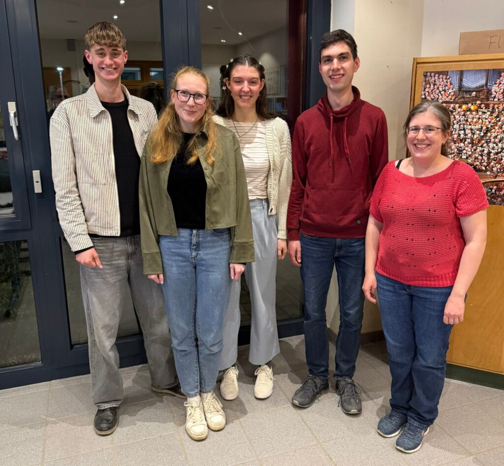 Der neue gewählte Vorstand des Fördervereins (v.l.n.r.): Mika Licht, Anna Lischke, Annika Marz, Daniel Kelkel, Eva-Maria-Ruppert (Chorleiterin).